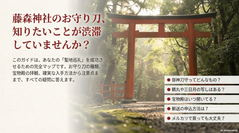 藤森神社のお守り刀はどれ?鶴丸国永写・三日月宗近写など御神刀守の違い、抜刀ギミックやご利益、宝物殿の公開日と休館日、アクセスと混雑のコツを整理。郵送(現金書留)のやり方、メルカリ等の相場と偽物対策までまとめ、藤森神社のお守り刀を納得して授与いただくための一記事です。