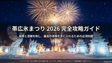 帯広氷祭り2026の花火の時間はいつ?駐車場や服装の不安を解消。帯広氷祭り2026の花火の打ち上げ時刻から会場に駐車場がない問題への対策、マイナス20度の極寒に耐える防寒着まで網羅。最終日の17時終了から打ち上げまでの空白時間を快適に過ごすコツも紹介。当日の準備はこれで万全です。