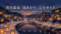 黒川温泉の湯あかりを部屋から独占しませんか?人気の黒川温泉の湯あかりが見える宿を御客屋など3軒に厳選。2025-2026年最新の日程や雪道の注意点、防寒対策まで網羅しています。黒川温泉の湯あかりが見える宿の予約のコツを知って、幻想的な光に包まれる特別な冬旅を叶えましょう。